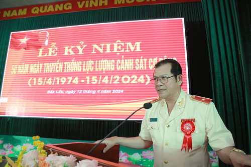 Sáng 12/4/2023, Công an tỉnh Đắk Lắk đã long trọng tổ chức Lễ kỷ niệm 50 năm Ngày truyền thống lực lượng Cảnh sát cơ động (15/4/1974 - 15/4/2024). Đại diện lãnh đạo tỉnh Đắk Lắk; lãnh đạo các sở, ban, ngành của tỉnh; lãnh đạo Công an tỉnh Đắk Lắk qua các thời kỳ và đại biểu các đơn vị Công an trong tỉnh đã tham dự buổi Lễ.