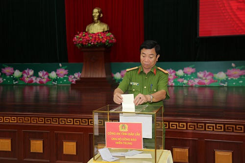 Tại Hội nghị, hưởng ứng lời kêu gọi của Bộ trưởng Bộ Công an, các đồng chí lãnh đạo tỉnh, lãnh đạo Công an tỉnh và đại diện lãnh đạo các đơn vị, Công an các huyện, thị xã, thành phố trong tỉnh tham dự Hội nghị đã tổ chức quyên góp để cùng các cấp, các ngành và Nhân dân cả nước hướng về đồng bào miền Trung thân yêu đang bị thiệt hại, mất mát to lớn do bão lũ gây ra. Trong thời gian tới, Công an tỉnh Đắk Lắk sẽ phát động trong toàn lực lượng tiếp tục đóng góp, ủng hộ đến đồng bào miền Trung, góp phần chia sẻ những khó khăn, thiệt hại với đồng bào, cán bộ, chiến sỹ vùng lũ lụt.