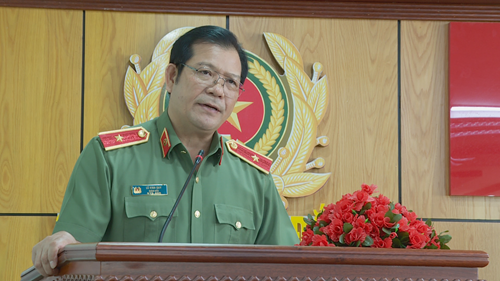 Đồng chí Thiếu tướng Lê Vinh Quy – Giám đốc Công an tỉnh phát biểu chỉ đạo