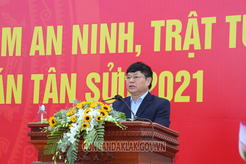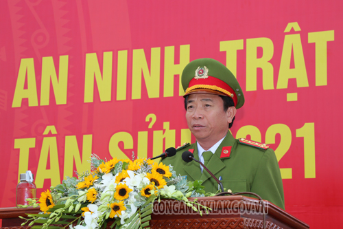 Tại buổi lễ, sau khi ghi nhận, đánh giá cao những kết quả nổi bật của lực lượng Công an Đắk Lắk trong năm 2020 vừa qua, đồng chí Phạm Minh Tấn - Phó Bí thư thường trực Tỉnh ủy Đắk Lắk đã phát biểu chỉ đạo một số nhiệm vụ trọng tâm mà lực lượng Công an Đắk Lắk cần thực hiện tốt trong đợt cao điểm ra quân tấn công, trấn áp tội phạm, góp phần bảo đảm ổn định ANTT trước, trong, sau Đại hội Đảng toàn quốc lần thứ XIII và Tết Nguyên đán Tân Sửu năm 2021 sắp tới. Đồng chí Phó Bí thư thường trực Tỉnh ủy nhấn mạnh:“ Công an tỉnh phải chủ động, nắm chắc, đánh giá, phân tích, dự báo sát, đúng tình hình để tham mưu, đề xuất cấp ủy, chính quyền địa phương chỉ đạo huy động sức mạnh tổng hợp của cả hệ thống chính trị và của toàn dân trong thực hiện nhiệm vụ bảo đảm an ninh chính trị, trật tự, an toàn xã hội trên địa bàn tỉnh; rà soát các kế hoạch, phương án bảo vệ tuyệt đối an toàn các công trình, mục tiêu trọng điểm, hoạt động của các đồng chí lãnh đạo Đảng, Nhà nước và các đoàn khách quốc tế đến thăm và làm việc tại địa phương; quản lý chặt địa bàn, giám sát chặt các hệ, loại đối tượng; triển khai có hiệu quả công tác bảo đảm an ninh chính trị trên các lĩnh vực, không để bị động bất ngờ và hình thành những điểm nóng về an ninh, trật tự; tiếp tục nâng cao hơn nữa chất lượng và hiệu quả công tác phối hợp, hiệp đồng tác chiến giữa lực lượng Công an với các lực lượng vũ trang và các cấp, các ngành, đoàn thể trong công tác phòng ngừa, đấu tranh, trấn áp các loại tội phạm, các hành vi vi phạm pháp luật, nhất là tại các địa bàn trọng điểm, phức tạp; chú trọng công tác tuyên truyền nhằm nâng cao ý thức cảnh giác, tự phòng, tự quản, tự bảo vệ, tự hòa giải và tích cực tham gia phòng, chống tội phạm của các tầng lớp Nhân dân.”