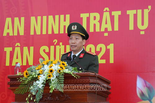 Đại tá Lê Văn Tuyến – Giám đốc Công an tỉnh Đắk Lắk quán triệt những yêu cầu nhiệm vụ toàn lực lượng Công an tỉnh cần thực hiện và hoàn thành trong đợt ra quân