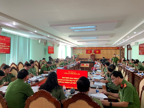 Quang cảnh cuộc họp của Công an tỉnh triển khai công tác đảm bảo ANTT Lễ hội cà phê Buôn Ma thuột lần thứ 7- năm 2019