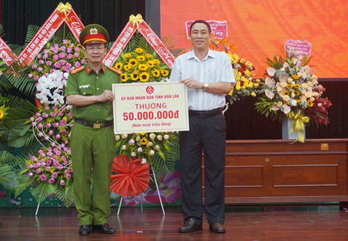 Đồng chí Võ Văn Cảnh - Phó Chủ tịch UBND tỉnh trao thưởng Công an tỉnh vì có thành tích xuất sắc trong công tác phòng, chống tội phạm, tệ nạn xã hội