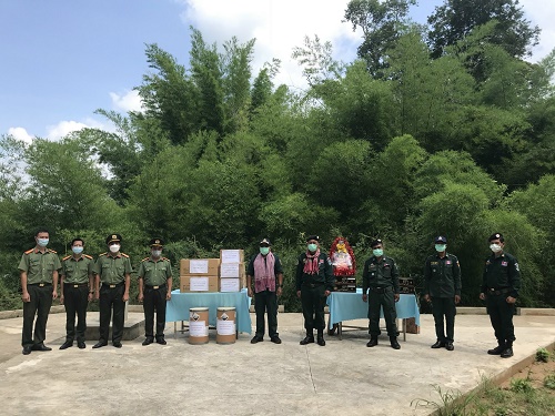 Trong dịp này, tại Cột mốc phụ số 44/4(2), xã Kông Na, huyện Buôn Đôn, tỉnh Đắk Lắk, Công tỉnh Đắk Lắk đã trao tặng các vật tư y tế phòng, chống dịch Covid-19 cho Công an tỉnh Mondulkiri, Vương quốc Campuchia, gồm: 3.000 khẩu trang y tế, 100 chai nước sát khuẩn tay khô và 50kg hóa chất phun khử khẩn Chloramin B.