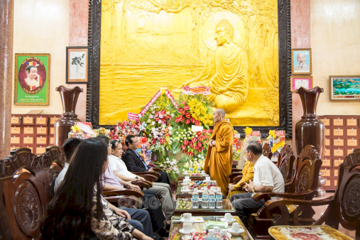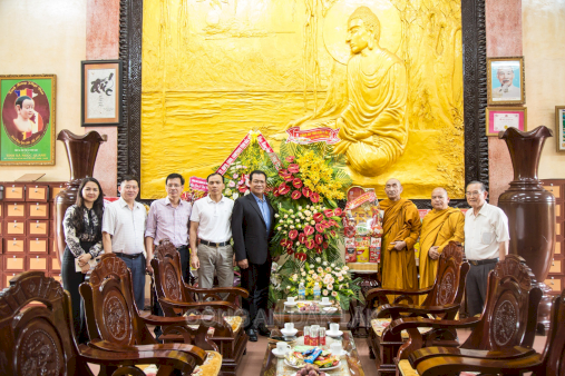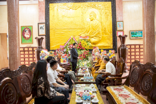 Đồng chí Thiếu tướng Lê Vinh Quy - Ủy viên Ban Thường vụ Tỉnh ủy, Giám đốc công an tỉnh đã đến thăm, chúc mừng Ban Trị sự Giáo hội Phật giáo Việt Nam tỉnh và Tịnh xá Ngọc Quang (chùa Trung tâm của Hệ phái Khất sĩ tại tỉnh)