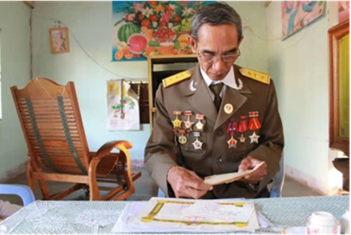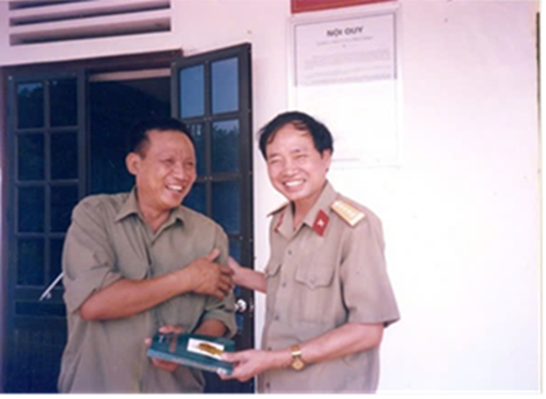 Đồng chí Thượng tá Trần Ngọc Hưởng và đồng chí Trung úy Nguyễn Đức Thịnh cùng nhớ lại ký ức hào hùng