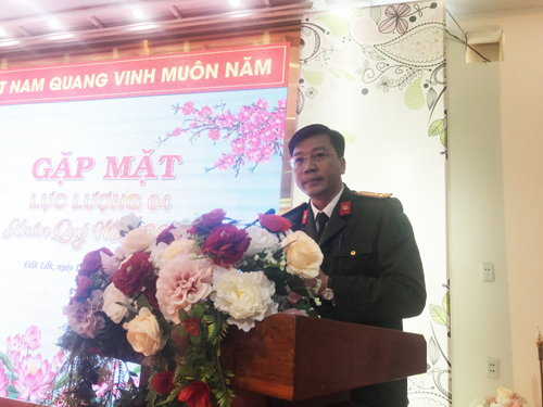 Phát biểu tại Buổi gặp mặt, đồng chí Thượng tá Lê Hữu Tuấn - Phó Giám đốc Công an tỉnh ghi nhận, biểu dương những đóng góp của toàn thể Lực lượng 04 đối với công tác đảm bảo an ninh chính trị, trật tự-an toàn xã hội trên địa bàn tỉnh.