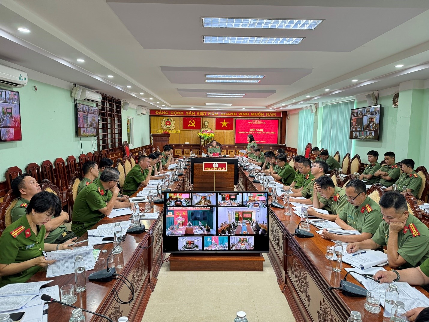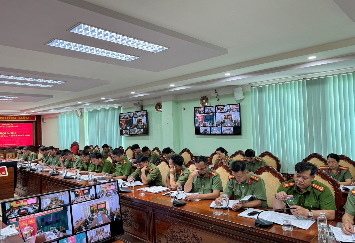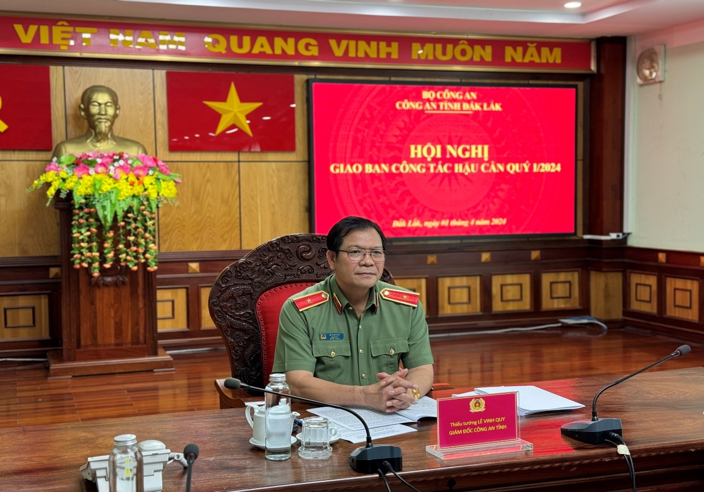 Chiều ngày 01/4/2024, Công an tỉnh Đắk Lắk tổ chức Hội nghị trực tuyến giao ban công tác hậu cần quý I năm 2024 và triển khai nhiệm vụ công tác hậu cần thời gian. Thiếu tướng Lê Vinh Quy – Uỷ viên Ban Thường vụ Tỉnh ủy, Bí thư Đảng ủy, Giám đốc Công an tỉnh dự và chỉ đạo hội nghị. Thiếu tướng Nguyễn Thị Xuân, Phó Giám đốc Công an tỉnh chủ trì hội nghị. Hội nghị được tuyền trực tuyến từ điểm cầu Trung tâm chỉ huy Công an tỉnh đến 15 điểm cầu Công an huyện, thị xã, thành phố.