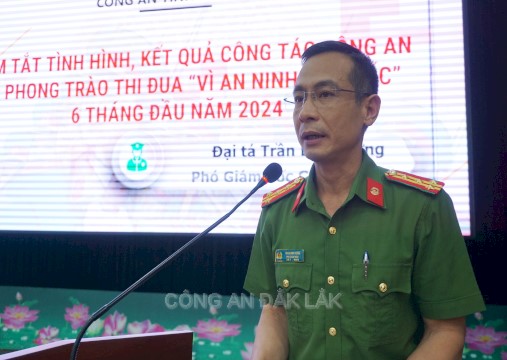 Sau chương trình khai mạc, Đại tá Trần Bình Hưng - Phó Giám đốc Công an tỉnh trình bày tóm tắt báo cáo tình hình, kết quả công tác công an; kết quả phong trào thi đua “Vì an ninh Tổ quốc” 6 tháng đầu năm và nhiệm vụ trọng tâm 06 tháng cuối năm 2024.