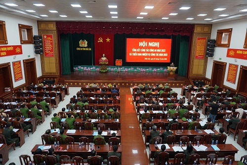 Hội nghị tổng kết công tác năm 2022 của Công an tỉnh diễn ra trong bối cảnh toàn quân đang nỗ lực, phấn đấu, quyết tâm triển khai quyết liệt đợt Cao điểm tấn công trấn áp tội phạm, bảo đảm ANTT Tết Nguyên đán Quý Mão 2023. Dự Hội nghị, có sự tham dự của đồng chí Thiếu tướng Vũ Hồng Văn, Cục trưởng Cục A03 - Bộ Công an, đại diện lãnh đạo một số Cục nghiệp vụ - BCA, đại diện lãnh đạo Tỉnh ủy, UBND tỉnh, lãnh đạo một số đơn vị lực lượng vũ trang, đại diện cấp ủy, chính quyền 15 huyện, thị xã, thành phố và các đồng chí nguyên lãnh đạo Bộ Công an.