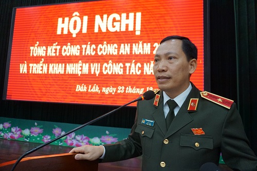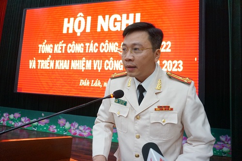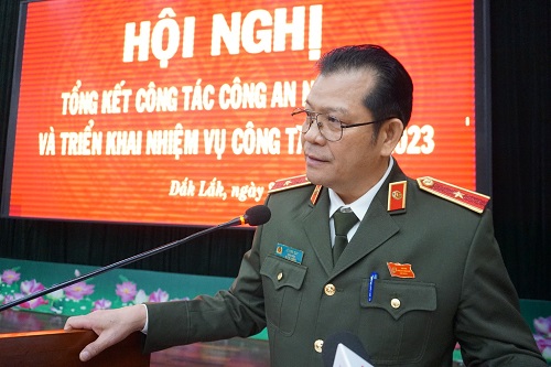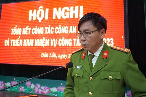 Phát biểu kết luận Hội nghị và phát động phong trào thi đua “Vì an ninh Tổ quốc” năm 2023, đồng chí Giám đốc Công an tỉnh kêu gọi toàn thể cán bộ, chiến sĩ Công an tỉnh nêu cao tinh thần cách mạng tiến công, đoàn kết nhất trí, nỗ lực, cố gắng, vượt qua mọi khó khăn, thử thách, với khẩu hiệu hành động “Xây dựng lực lượng Công an tỉnh Đắk Lắk thật sự trong sạch, vững mạnh, chính quy, tinh nhuệ, hiện đại”, phấn đấu hoàn thành xuất sắc nhiệm vụ được giao.