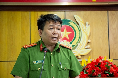 Đồng chí Đại tá Trần Bình Hưng - Phó Giám đốc Công an tỉnh phát biểu tại Hội nghị