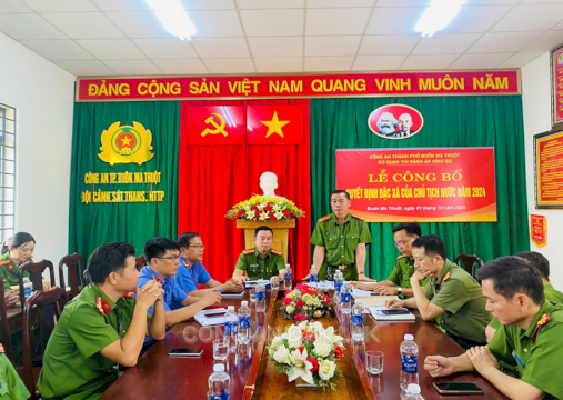 Thực hiện quyết định đặc xá năm 2024 của Chủ tịch nước cho các phạm nhân đang chấp hành án, ngày 01/10/2024, Công an tỉnh Đắk Lắk tổ chức Lễ công bố Quyết định đặc xá cho 10 phạm nhân đang chấp hành án phạt tù, gồm: 06 phạm nhân tại Trại tạm giam Công an tỉnh, 04 phạm nhân tại Nhà tạm giữ Công an thành phố Buôn Ma Thuột. Đây là những phạm nhân có quá trình chấp hành án tốt, chấp hành nội quy, quy định của cơ sở giam giữ, tích cực lao động, cải tạo tốt, hàng tháng được xếp loại cải tạo khá trở lên và đủ điều kiện đặc xá năm 2024.