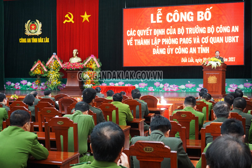 Trước yêu cầu cấp bách của nhiệm vụ bảo đảm an ninh, phòng, chống tội phạm trên không gian mạng và công tác xây dựng chỉnh đốn Đảng đặt ra trong tình hình mới, Bộ trưởng Bộ Công an đã đồng ý, ký các quyết định thành lập Phòng An ninh mạng, phòng chống tội phạm sử dụng công nghệ cao và Cơ quan Ủy ban kiểm tra Đảng ủy Công an tỉnh Đắk Lắk.