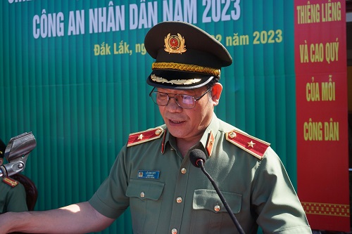 Đồng chí Thiếu tướng Lê Vinh Quy - Giám đốc Công an tỉnh phát biểu chỉ đạo tại buổi lễ