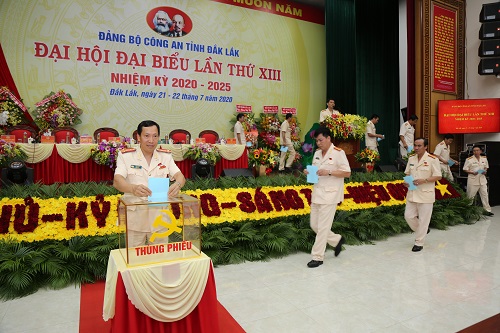 Với tinh thần “Đoàn kết, dân chủ, kỷ cương, sáng tạo, hiệu quả”, Đại hội đã bầu ra Ban chấp hành khóa XIII, nhiệm kỳ 2020-2025 gồm 22 đồng chí. Ngay sau đó, Ban chấp hành khóa mới đã họp phiên đầu tiên, bầu ra Ban Thường vụ và các chức danh chủ chốt của Đảng bộ. Tại đại hội, thay mặt Ban Chấp hành, Đại tá Lê Văn Tuyến, Bí thư Đảng ủy, Giám đốc Công an tỉnh Đắk Lắk đã thể hiện quyết tâm cùng toàn Đảng bộ sẽ đoàn kết, dân chủ, thực hiện thắng lợi các mục tiêu, chỉ tiêu mà Đại hội đã đề ra để tiếp tục nâng cao hơn nữa chất lượng công tác xây dựng Đảng, xây dựng lực lượng Công an Đắk Lắk, hoàn thành xuất sắc các nhiệm vụ chính trị được giao.