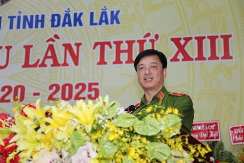 Thứ trưởng Bộ Công an Nguyễn Duy Ngọc phát biểu chỉ đạo Đại hội Đảng bộ Công an tỉnh Đắk Lắk khóa XIII, nhiệm kỳ 2020-2025