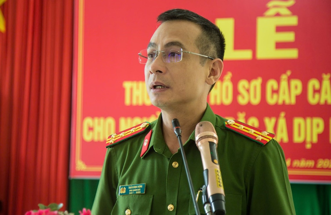 Đồng chí Thượng tá Phùng Minh Trí, Trưởng Phòng Cảnh sát QLHC về TTXH đôn đốc, chỉ đạo Tổ công tác thu nhận hồ sơ cấp Thẻ căn cước cho phạm nhân tại Trại giam Đắk Trung