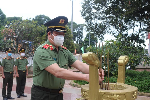 Đồng chí Thiếu tướng Lê Vinh Quy - Giám đốc Công an tỉnh cùng đoàn công tác dâng hương tưởng niệm tại Đền thờ Liệt sỹ thôn Kiên Cường, xã Hòa Thuận, TP Buôn Ma Thuột