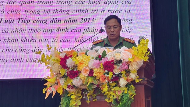 Đồng chí Thượng tá Hà Quốc Huy, Chánh Thanh tra Công an tỉnh - tập huấn các quy định về công tác tiếp công dân, giải quyết KN, TC