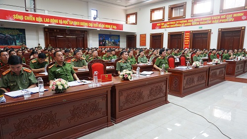 Đại tá Lê Văn Tuyến - Ủy viên Ban thường vụ Tỉnh ủy, Bí thư Đảng ủy, Giám đốc Công an tỉnh Đắk Lắk phát biểu chỉ đạo tại Hội nghị tổng kết