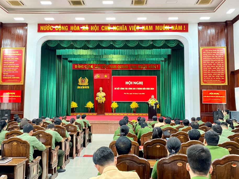 Dự Hội nghị có đại biểu Văn phòng Bộ Công an, Văn phòng UBND tỉnh và Cục thi hành án dân sự; tập thể Ban Thường vụ Đảng ủy, lãnh đạo Công an tỉnh, lãnh đạo Công an các đơn vị, địa phương. Đồng chí Đại tá Phan Thanh Tám - Ủy viên Ban Thường vụ Tỉnh ủy, Bí thư Đảng ủy, Giám đốc Công an tỉnh chủ trì Hội nghị.Toàn cảnh Hội nghị sơ kết công tác công an 6 tháng đầu năm 2024