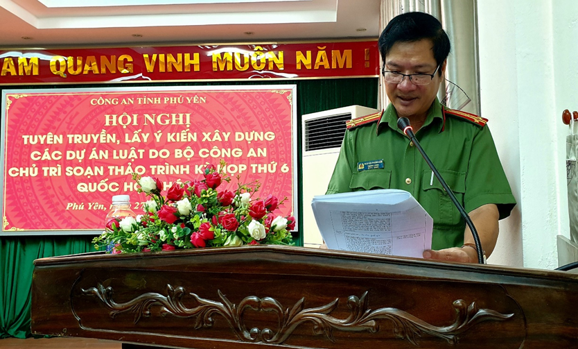 Đồng chí Thượng tá Nguyễn Phong Lưu, Trưởng Phòng Tham mưu báo cáo tóm tắt 04 dự án luậtĐ/c Phạm Đại Dương - Bí thư Tỉnh ủy phát biểu chỉ đạo Hội nghị