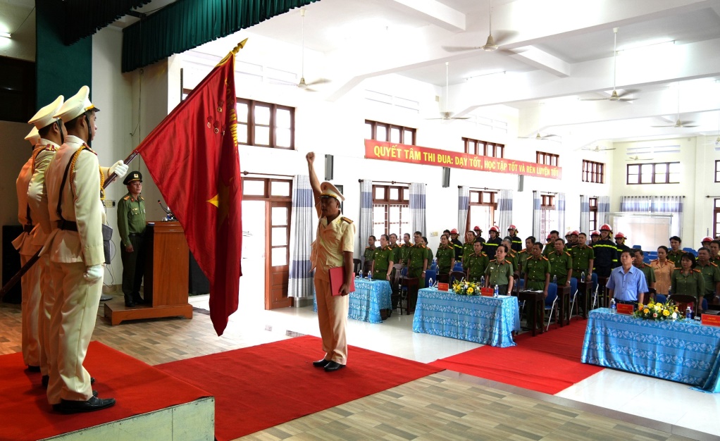 Đồng chí Trung tá Trần Thành Vũ, thay mặt Đội chữa cháy và CNCH khu vực thị xã Đông Hòa tuyên thệ, hứa quyết tâm