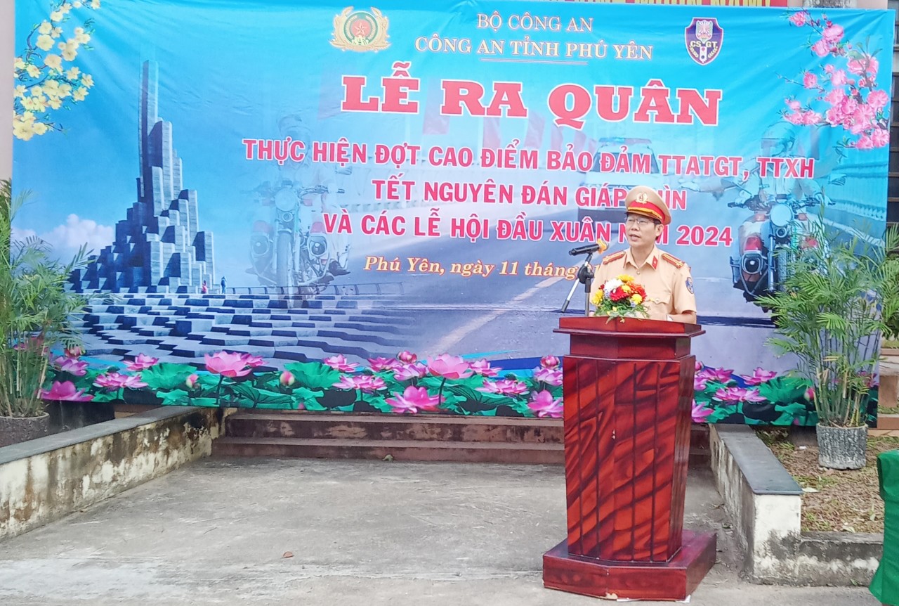 Tại buổi Lễ ra quân, lãnh đạo Công an tỉnh đã chỉ đạo lực lượng CSGT toàn tỉnh triển khai một số nội dung: 1. Từ ngày 11/01/2024, toàn lực lượng CSGT ra quân huy động tối đa lực lượng, phương tiện, trang thiết bị kĩ thuật nghiệp vụ, triển khai thực hiện nghiêm túc, có hiệu quả chỉ đạo của Cục C08-BCA, Giám đốc Công an tỉnh về các nhiệm vụ, giải pháp bảo đảm TTATGT, kịp thời phòng ngừa, phát hiện, ngăn chặn và xử lý các hành vi vi phạm là nguyên nhân trực tiếp dẫn đến tai nạn giao thông, góp phần bảo đảm thực hiện đạt mục tiêu kiềm chế, làm giảm TNGT, không để xảy ra ùn tắc giao thông, phòng ngừa, đấu tranh có hiệu quả với các loại tội phạm và vi phạm pháp luật trên các tuyến giao thông, hỗ trợ, phục vụ nhu cầu đi lại, vui chơi, lễ hội của Nhân dân trong dịp tếp Nguyên đán Giáp Thìn và các Lễ hội đầu xuân năm 2024. 2. Để đợt cao điểm đạt được mục tiêu đề ra, lực lượng CSGT toàn tỉnh phải xử lý kiên quyết, triệt để kết hợp với việc tuyên truyền, nâng cao ý thức chấp hành pháp luật trật tự ATGT của người dân, đảm bảo an toàn cho cán bộ chiến sĩ và người dân trong khi làm nhiệm vụ, không ảnh hưởng đến hoạt động đi lại bình thường của người dân. Bên cạnh đó lãnh đạo, chỉ huy, cán bộ, chiến sĩ phải thể hiện tinh thần, trách nhiệm cao nhất trong quá trình thực hiện nhiệm vụ, chấp hành nghiêm quy trình, quy định công tác, Điều lệnh CAND, lễ tiết tác phong và văn hoá ứng xử khi tiếp xúc với Nhân dân, nghiêm cấm việc can thiệp, tiếp nhận can thiệp việc xử lý vi phạm về TTATGT, nêu cao tinh thần cảnh giác trong quá trình làm nhiệm vụ.