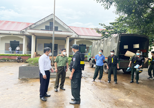 Đồng chí Chủ tịch UBND huyện Krông Búk (áo trắng) chỉ đạo lực lượng tăng cường tại các địa bàn