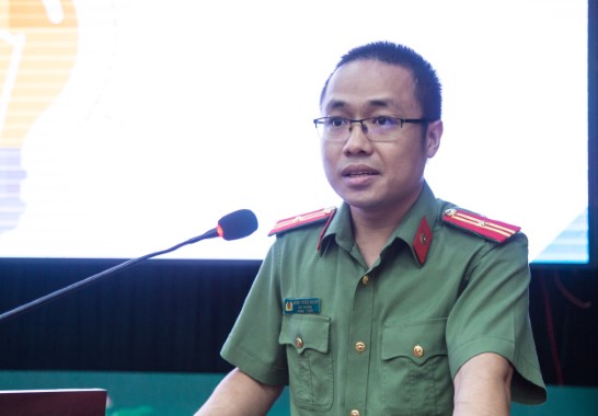 Đ/c Trung tá Nguyễn Thanh Hải – Phó trưởng Phòng Tham mưu thay mặt Cơ quan thường trực CCHC Công an tỉnh điểm lại những kết quả nổi bật trong triển khai công tác CCHC của toàn công an tỉnh trong năm 2023, ghi nhận thành tích, nỗ lực, cố gắng của tập thể lãnh đạo, chỉ huy và CBCS toàn công an tỉnh trong chỉ đạo, điều hành và tổ chức thực hiện công tác CCHC, điển hình là: (1)Phát động 02 Cuộc thi, 08 đợt cao điểm, 02 phong trào thi đua về CCHC. (2) Tham mưu 03 dự thảo văn bản QPPL, tích cực tham gia ý kiến góp ý hoàn thiện văn bản QPPL, đóng góp 33 ý kiến tham luận đối với 05 dự án Luật do Bộ Công an chủ trì soạn thảo; tổ chức hiệu quả, sâu rộng đợt cao điểm tuyên truyền, vận động toàn dân giao nộp và đấu tranh với tội phạm, vi phạm pháp luật về VK, VLN, CCHT; thu được số lượng lớn VK, VLN, CCHT trong quần chúng nhân dân. (3) Triển khai nhiều các làm hay, mô hình về cải cách TTHC tại các đơn vị, như “Ngày không viết, Ngày không hẹn”; “03 TTHC không chờ, không giấy hẹn”; đề xuất cắt giảm thời gian giải quyết đối với 29 TTHC, 17 quy định về TTHC liên quan đến hoạt động kinh doanh. Từ kết quả của Đề án 06, đã có hơn 200 cơ quan, đơn vị, tổ chức trên địa bàn tỉnh có thể khai thác thông tin từ CSDLQG về dân cư với 20 trường thông tin có thể khai thác. (4) Cải cách TTHC trong nội bộ tiếp tục được chú trọng, điểm mới là mô hình “Tiếp nhận, giải quyết thủ tục hành chính trên lĩnh vực đảm bảo tài chính - hậu cần theo cơ chế Một cửa điện tử”, được Bộ Công an đánh giá là sáng kiến có sự sáng tạo, đột phá, tiên phong. (5) Chủ động phân cấp cho công an cấp dưới phù hợp với yêu cầu thực tiễn đối với 03 lĩnh vực công tác. (6) Chủ động nghiên cứu, xây dựng, nâng cấp, ập nhật 15 ứng dụng CNTT nâng cao hiệu quả công tác chuyên môn tại đơn vị. Quản lý, vận hành gần 2.000 camera giám sát an ninh; 235 trang, 1.172 nhóm Zalo O.A; tích cực đẩy mạnh thực hiện các biện pháp, hoàn thành vượt chỉ tiêu công tác số hóa hồ sơ, tài liệu Bộ Công an đề ra. (7) Duy trì tiếp nhận thực hiện tiếp nhận, giải quyết TTHC tại Bộ phận Một cửa tại Công an 3 cấp. Kết quả khảo sát sự hài lòng của người dân qua phiếu điều tra xã hội học của Bộ Công an cho thấy đa số phiếu đánh giá thái độ phục vụ của cán bộ thực hiện tiếp nhận và trả kết quả ở mức độ “hài lòng”, chất lượng phục vụ mức “tốt”. Đồng thời, nêu rõ những tồn tại, hạn chế trên từng lĩnh vực CCHC.