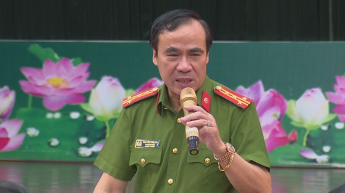 Thượng tá Phùng Minh Trí, Chánh Văn phòng Cơ quan Cảnh sát điều tra báo cáo tổng kết cao điểm xác minh, vận động đầu thú, thanh loại đối tượng truy nã.