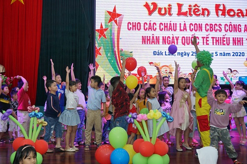 Tối 29/5, tại hội trường Công an tỉnh, với sự chuẩn bị chu đáo của Ban Tổ chức, từ khâu trang trí sân khấu đẹp mắt, chùm bóng bay nhiều màu sắc và những phần quà hấp dẫn đã mang đến cho các em nhỏ một bầu không khí hào hứng, phấn khởi. Phát biểu tại sự kiện này, đồng chí Đại tá Nguyễn Văn Hội, Ủy viên ban Thường vụ Đảng ủy, Phó Giám đốc Công an tỉnh đã gửi những lời chúc tốt đẹp và động viên các cháu thiếu nhi là con em cán bộ, chiến sĩ ngày càng chăm ngoan, học giỏi, luôn vâng lời cha mẹ, thầy cô để trở thành những công dân có ích cho xã hội, đóng góp công sức xây dựng và bảo vệ đất nước mai sau. Tại buổi liên hoan, các cháu thiếu nhi đã được thưởng thức những tiết mục văn nghệ, chương trình ảo thuật đặc sắc do các bạn đang sinh hoạt tại nhà Văn hóa thiếu nhi tỉnh Đắk Lắk biểu diễn như: tham gia thi trò chơi theo nhóm, trả lời những câu hỏi trí tuệ được tặng quà, đã làm cho không khí liên hoan sôi động, hào hứng hơn để thể hiện trí thông minh, sự năng động và nhạy bén của các cháu. Qua đây, các cháu cũng được làm quen giao lưu, học hỏi lẫn nhau và cùng hòa chung trong bầu không khí vui tươi, đầy ý nghĩa.