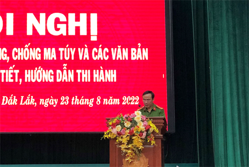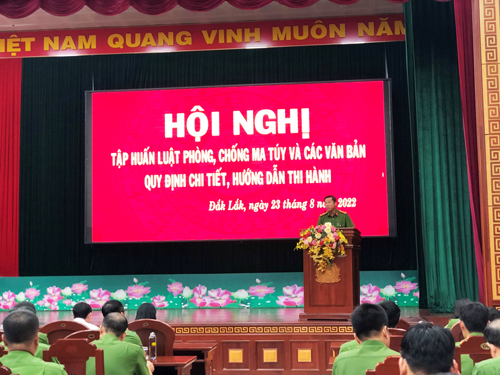 Ngày 23/8/2022, Công an tỉnh tổ chức tập huấn Luật phòng, chống ma túy năm 2021 và các văn bản quy định chi tiết hướng dẫn thi hành cho cán bộ, chiến sĩ lực lượng Cảnh sát điều tra tội phạm về ma túy và Công an xã, phường, thị trấn. Tham dự Hội nghị có đồng chí Đại tá Nguyễn Văn Bôn – Phó Giám đốc Công an tỉnh, lãnh đạo Phòng Cảnh sát điều tra tội phạm về ma túy và các đồng chí lãnh đạo Công an huyện, thị xã, thành phố phụ trách công tác phòng, chống ma túy.