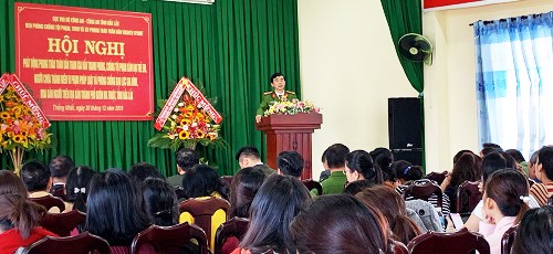 Tham dự Hội nghị phát động quần chúng có đại diện Phòng 4, Cục V05 - Bộ Công an; lãnh đạo Công an tỉnh; các thành viên Ban Chỉ đạo thành phố; đại diện lãnh đạo các phòng nghiệp vụ thuộc Công an tỉnh, đại diện Đảng ủy, UBND, các ban, ngành, đoàn thể và 220 người dân thuộc phường Thành Nhất tham dự. Tại buổi phát động, báo cáo viên thuộc các phòng nghiệp vụ của Công an tỉnh, Công an thành phố đã tuyên truyền về cách thức phòng tránh, tự vệ khi có nguy cơ bị xâm hại trẻ em, mua bán người; giáo dục kỹ năng tự bảo vệ trẻ em cho gia đình và trẻ em để phòng tránh các hành vi bị người khác xâm hại; dẫn chứng các vụ việc nghiêm trọng xuất phát từ bạo lực gia đình; đồng thời, trao đổi, thảo luận, tiếp nhận ý kiến đống góp, phản hồi của Nhân dân.