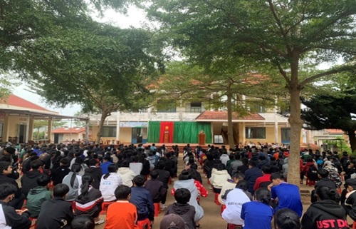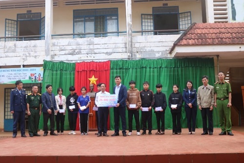 Hoạt động tuyên truyền cam kết không sử dụng pháo cho các em học sinh và trao học bổng tại Trường THCS Hùng Vương