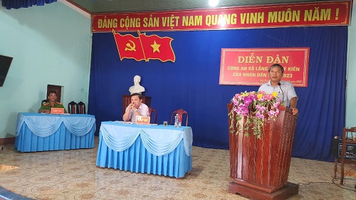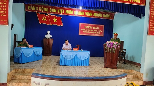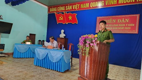 Đại diện chỉ huy Công an xã giải đáp thắc mắc của Nhân dân