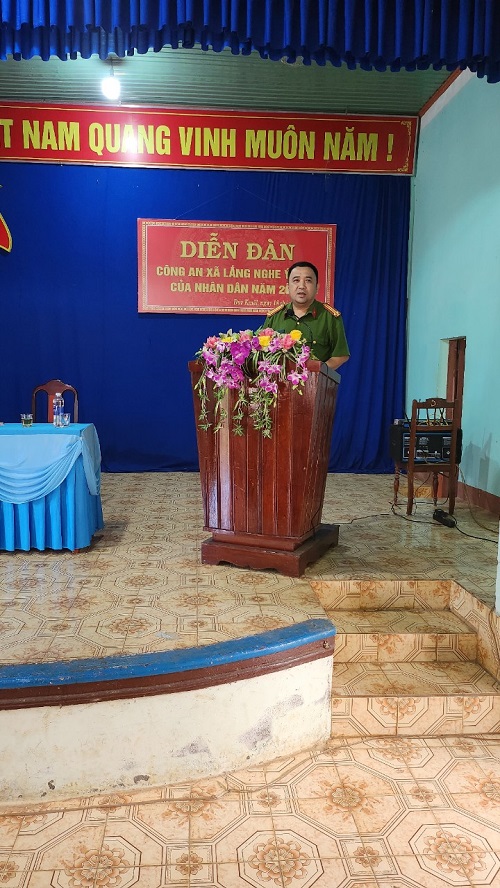 Tại hội nghị, đại diện chỉ huy Công an xã đã báo cáo trước toàn thể đại biểu, quần chúng Nhân dân trên địa bàn về kết quả công tác của Công an xã 09 tháng đầu năm 2023; kết quả công tác xây dựng phong trào toàn dân bảo vệ ANTQ 9 tháng đầu năm 2023 của Ban chỉ đạo PCTP, TNXH và xây dựng phong trào toàn dân bảo vệ ANTQ xã; kết quả thực hiện cuộc vận động “Học tập và làm theo tư tưởng, đạo đức, phong cách Hồ Chí Minh” và “Kết quả khắc phục những ý kiến góp ý của quần chúng Nhân dân trong kỳ họp diễn đàn năm 2022”.