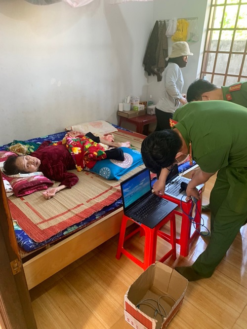 Cán bộ, chiến sĩ hỗ trợ người già, yếu, bệnh tật làm thẻ CCCD