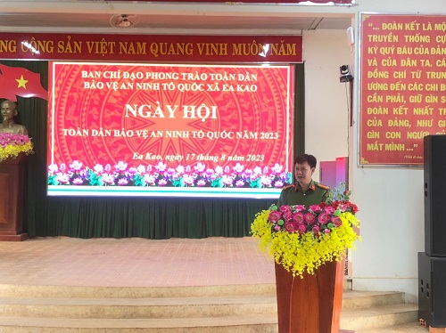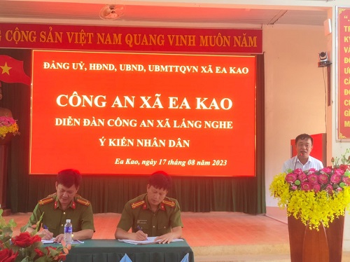 Trong Qúy III năm 2023, Công an xã Ea Kao đã tổ chức Ngày hội toàn dân bảo vệ ANTQ và Diễn đàn Công an xã lắng nghe ý kiến Nhân dân, có khoảng 150 người tham dự, tiếp thu 08 ý kiến đóng góp của bà con Nhân dân. Bên cạnh đó, nhằm tăng cường tuyên truyền, vận động quần chúng Nhân dân nhận diện và đấu tranh chống các luận điệu xuyên tạc, phản động, chống phá của các thế lực thù địch, các loại tà đạo, đạo lạ như Tin Lành đấng Christ Tây Nguyên, FULRO lưu vong, đặc biệt là các thủ đoạn lôi kéo người đồng bào DTTS kích động, bạo loạn, biểu tình, khủng bố sử dụng vũ trang nhằm tấn công, chống lại Đảng và chính quyền, Công an xã Ea Kao đã phối hợp với Đội An ninh Công an thành phố tổ chức 05 buổi phát động phong trào toàn dân bảo vệ ANTQ tại 05 thôn, buôn tập trung nhiều đồng bào DTTS, thu hút khoảng 1.300 người tham gia; tuyên truyền pháp luật tại 02 trường học trên địa bàn nhân dịp Khai giảng năm học mới. Qua đó lồng ghép tuyên truyền về Đề án 06, định danh điện tử, vận động thu hồi VK, VLN, CCHT và trao tặng các phần quà cho các hộ dân có hoàn cảnh khó khăn, các em học sinh nghèo vượt khó…