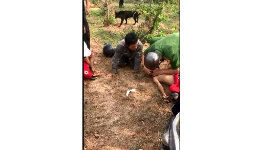 Đồng chí Nguyễn Xuân Toàn – Cán bộ Công an xã thực hiện các biện pháp cứu cháu bé tại hiện trường
