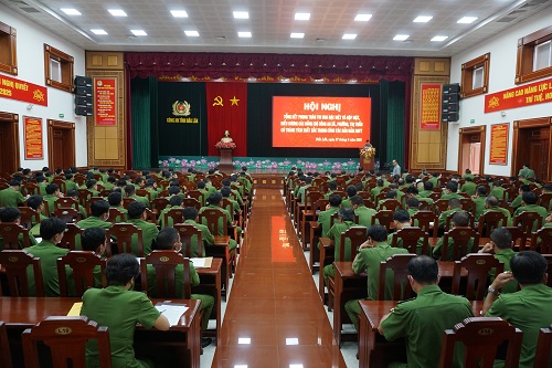 Quang cảnh tại Hội nghị Tổng kết phong trao thi đua đặc biệt và gặp mặt biểu dương các đồng chí Công an xã, phường, thị trấn có thành tích xuất sắc trong công tác bảo đảm ANTT