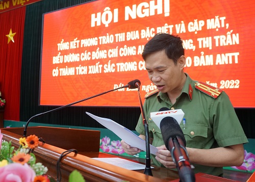 Với những kết quả đó, tại Hội nghị tổng kết phong trào thi đua đặc biệt, nhiều tập thể, cá nhân Công an xã, phường, thị trấn có thành tích xuất sắc đã được nhận Bằng khen của Bộ Công an và Giấy khen của Giám đốc Công an tỉnh Đắk Lắk./.