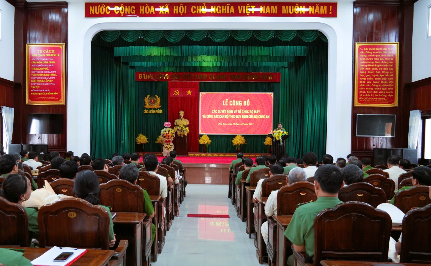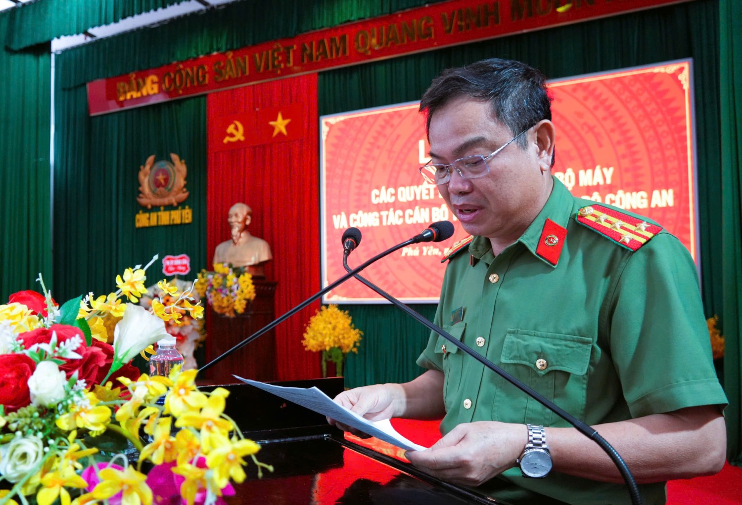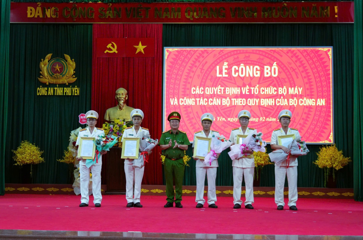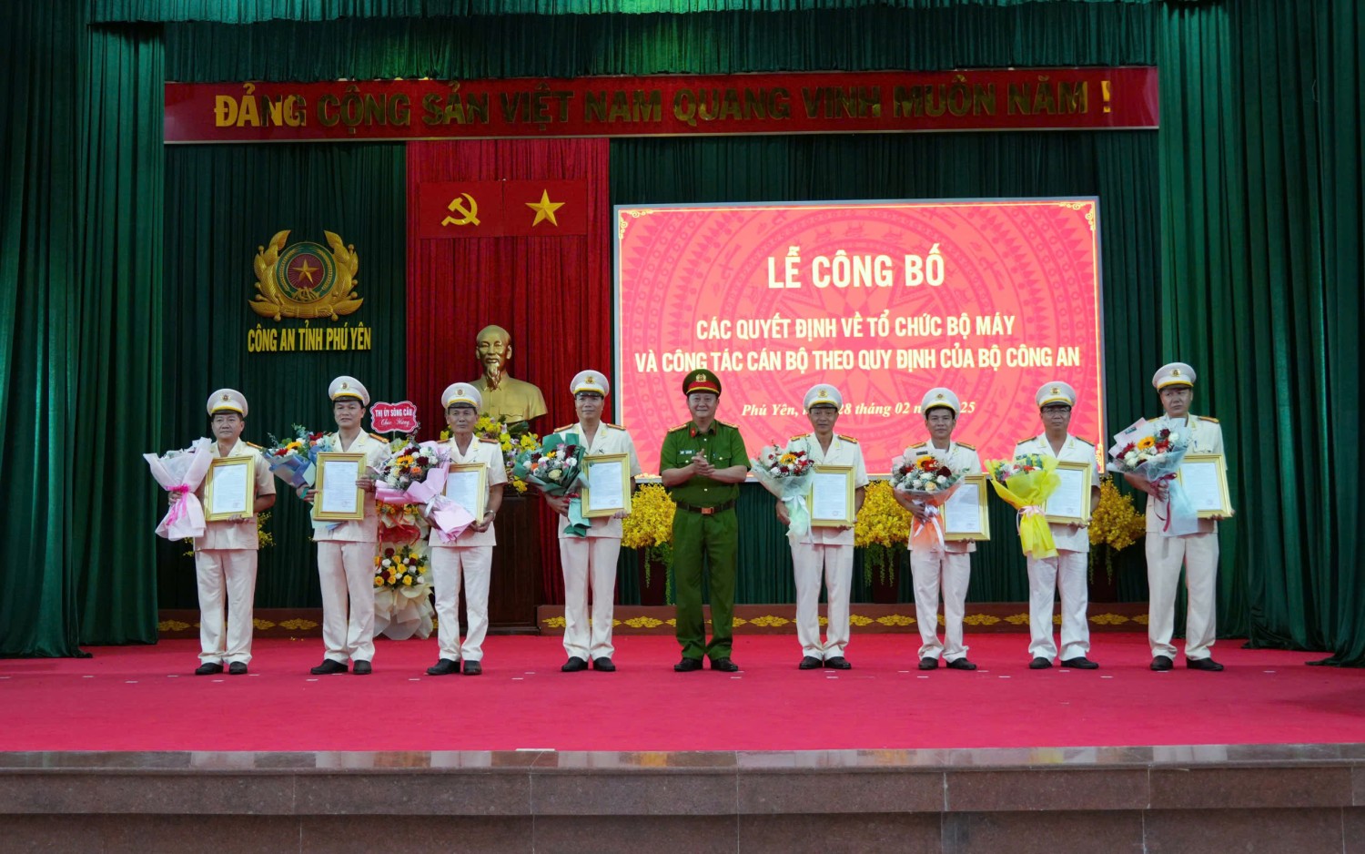 Ngày 28/02, Công an tỉnh Phú Yên tổ chức Lễ công bố các quyết định về sắp xếp tổ chức bộ máy và công tác cán bộ theo mô hình tổ chức bộ máy mới của Bộ Công an. Dự lễ có đồng chí Cao Thị Hòa An – Phó Bí thư Thường trực Tỉnh ủy, Chủ tịch HĐND tỉnh cùng lãnh đạo các sở, ban, ngành và đơn vị liên quan.