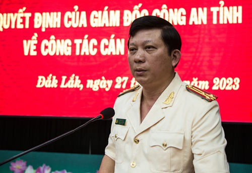 Theo đó, Giám đốc Công an tỉnh đã quyết định điều động cán bộ đối với 7 đồng chí gồm: Thượng tá Huỳnh Thanh Bình (sinh năm 1976), Trưởng phòng Hậu cần đến nhận công tác và giữ chức vụ Trưởng Công an thành phố Buôn Ma Thuột; Thượng tá Bùi Trọng Tuấn (sinh năm 1977), Trưởng Công an thành phố Buôn Ma Thuột đến nhận công tác và giữ chức vụ Trưởng phòng Cảnh sát giao thông; Thượng tá Vũ Tiến Thăng (sinh năm 1970), Trưởng phòng Cảnh sát giao thông đến nhận công tác và giữ chức vụ Chánh Văn phòng Cơ quan Cảnh sát điều tra; Thượng tá Phùng Minh Trí (sinh năm 1978), Chánh Văn phòng Cơ quan Cảnh sát điều tra đến nhận công tác và giữ chức vụ Trưởng Công an huyện Ea H’leo; Thượng tá Nguyễn Công Hòa (sinh năm 1975), Trưởng Công an huyện Ea H’leo đến nhận công tác và giữ chức vụ Trưởng phòng Hậu cần; Thượng tá Lê Văn Tuấn (sinh năm 1978), Trưởng Công an huyện Krông Ana đến nhận công tác và giữ chức vụ Trưởng phòng An ninh điều tra; Thượng tá Nguyễn Văn Quý (sinh năm 1965), Phó Trưởng phòng Cảnh sát hình sự đến nhận công tác và giữ chức vụ Phó Chánh Văn phòng Cơ quan Cảnh sát điều tra. Cùng với đó, Công an tỉnh Đắk Lắk đã công bố Quyết định bổ nhiệm đối với Trung tá Nguyễn Thanh Phương (sinh năm 1982), Phó Trưởng Công an huyện Krông Ana, giữ chức vụ Trưởng Công an huyện Krông Ana.