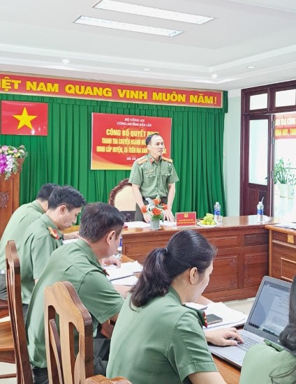 Ngày 29/3/2024, Tại Hội trường Thanh tra Công an tỉnh Đắk Lắk đã tổ chức công bố quyết định thanh tra việc chấp hành các quy định của pháp luật về quản lý, một số ngành nghề đầu tư kinh doanh có điều kiện về ANTT; quản lý, sử dụng con dấu; quản lý căn cước công dân, Cơ sở dữ liệu quốc gia về dân cư và Cơ sở dữ liệu căn cước công dân đối với 12 đơn vị, gồm: Sở Kế hoạch và Đầu tư; Sở văn hóa Thể thao và Du lịch; Sở Thông tin và Truyền Thông; UBND thành phố Buôn Ma Thuột; UBND phường Ea Tam và UBND xã Hòa Phú thuộc thành phố Buôn Ma Thuột; UBND huyện Ea H’Leo; UBND xã Ea Nam và UBND xã Ea Ral thuộc huyện Ea H’Leo; UBND huyện Ea Kar; UBND thị trấn Ea Kar và UBND xã Cư Ni thuộc huyện Ea Kar. Đồng chí Đại tá Trần Quang Hiếu – Phó Giám đốc Công an tỉnh chủ trì buổi công bố thanh tra.