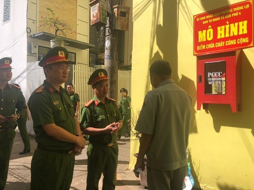 Tại đây, đồng chí Trung tá Nguyễn Công Thành đã đến từng hộ dân tham gia mô hình “Tổ liên gia an toàn phòng cháy chữa cháy” và mô hình “Điểm chữa cháy công cộng” để kiểm tra việc lắp đặt thiết bị, phương tiện PCCC và nhận thức, kỹ năng của đội dân phòng và người dân về các mô hình này. Bên cạnh đó, Đoàn công tác Cục PCCC và CNCH còn phổ biến thêm với các thành viên trong tổ liên gia về những kiến thức liên quan an toàn phòng chống cháy, nổ cũng như cách thức sử dụng bình chữa cháy hiệu quả.