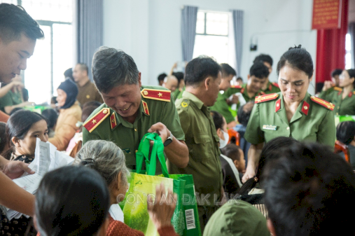 Nhân dịp 77 năm Ngày Thương binh – Liệt sỹ, hướng tới kỷ niệm 79 năm ngày truyền thống lực lượng CAND. Cụm thi đua số 9 - Khối các đơn vị trực thuộc Bộ Công an phối hợp Công an tỉnh và các đơn vị thiện nguyện tổ chức chương trình hướng về cơ sở chung sức cùng cộng đồng với các hoạt động an sinh xã hội. Tại chương trình, các đơn vị đã trao tặng 250 phần quà cho các gia đình chính sách, đồng bào khó khăn trên địa bàn xã, tổ chức khám chữa bệnh, cấp phát thuốc cho hơn 200 trường hợp. Đồng thời, Phòng Kỹ thuật hình sự đã trao tặng cho công an xã Ea Drông 1 bộ máy tính phục vụ công tác. Cũng trong dịp này, đoàn đã đến thăm mẹ Việt Nam Anh hùng Nguyễn Thị Tuynh – 101 tuổi, mẹ có 2 người con hy sinh bảo vệ tổ quốc năm 1966 – 1975.