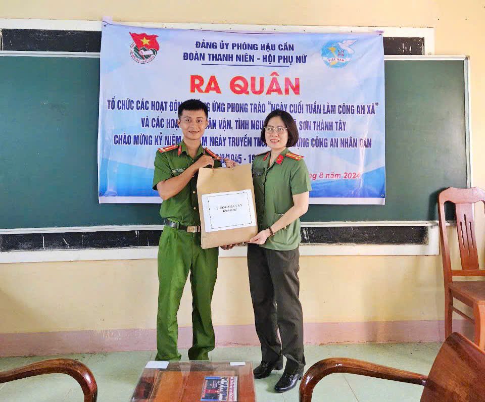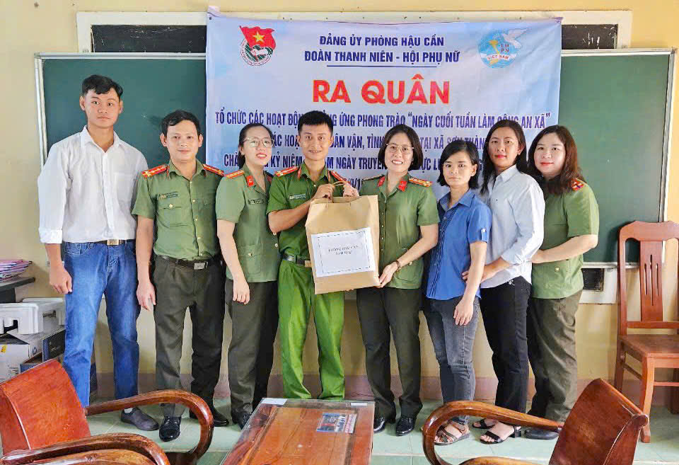 Tại chương trình, đoàn viên, hội viên Phòng Hậu cần trao tặng tủ sách pháp luật cho Công an xã; tặng bản đồ Việt Nam hưởng ứng cuộc vận động “Tự hào một dải non sông” triển khai đội hình hỗ trợ bà con nhân dân cài đặt bổ sung mã định danh điện tử; hỗ trợ lực lượng Công an xã thực hiện một số nhiệm vụ chuyên môn như cập nhật dữ liệu dân cư mở rộng.. Cùng ngày, đoàn đã tổ chức thi công và bàn giao công trình "Ánh sáng an ninh" cho bà con nhân dân xã Sơn Thành Tây với 26 bóng điện năng lượng mặt trời được lắp đặt trên đoạn đường dài 2km, kinh phí gần 42 triệu đồng số tiền này do các đơn vị và bà con nhân dân đóng góp. Đây là hoạt động nhằm tiếp tục phát huy tinh thần xung kích, tình nguyện của đoàn viên, hội viên trong việc tham gia phát triển kinh tế - xã hội, xây dựng nông thôn mới, giúp người dân đi lại thuận lợi vào ban đêm, tạo diện mạo mới cho đường giao thông nông thôn, phục vụ tốt công tác đấu tranh phòng ngừa tội phạm và tệ nạn xã hội tại địa phương.