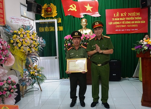 Ngày 11/7, bệnh viện Công an tỉnh Đắk Lắk đã tổ chức gặp mặt nhân kỷ niệm 75 năm Ngày truyền thống lực lượng Y tế Công an nhân dân (12/7/1947 – 12/7/2022). Đồng chí Đại tá Nguyễn Văn Bình, Phó Giám đốc Công an tỉnh đến dự và chỉ đạo tại lễ gặp mặt.